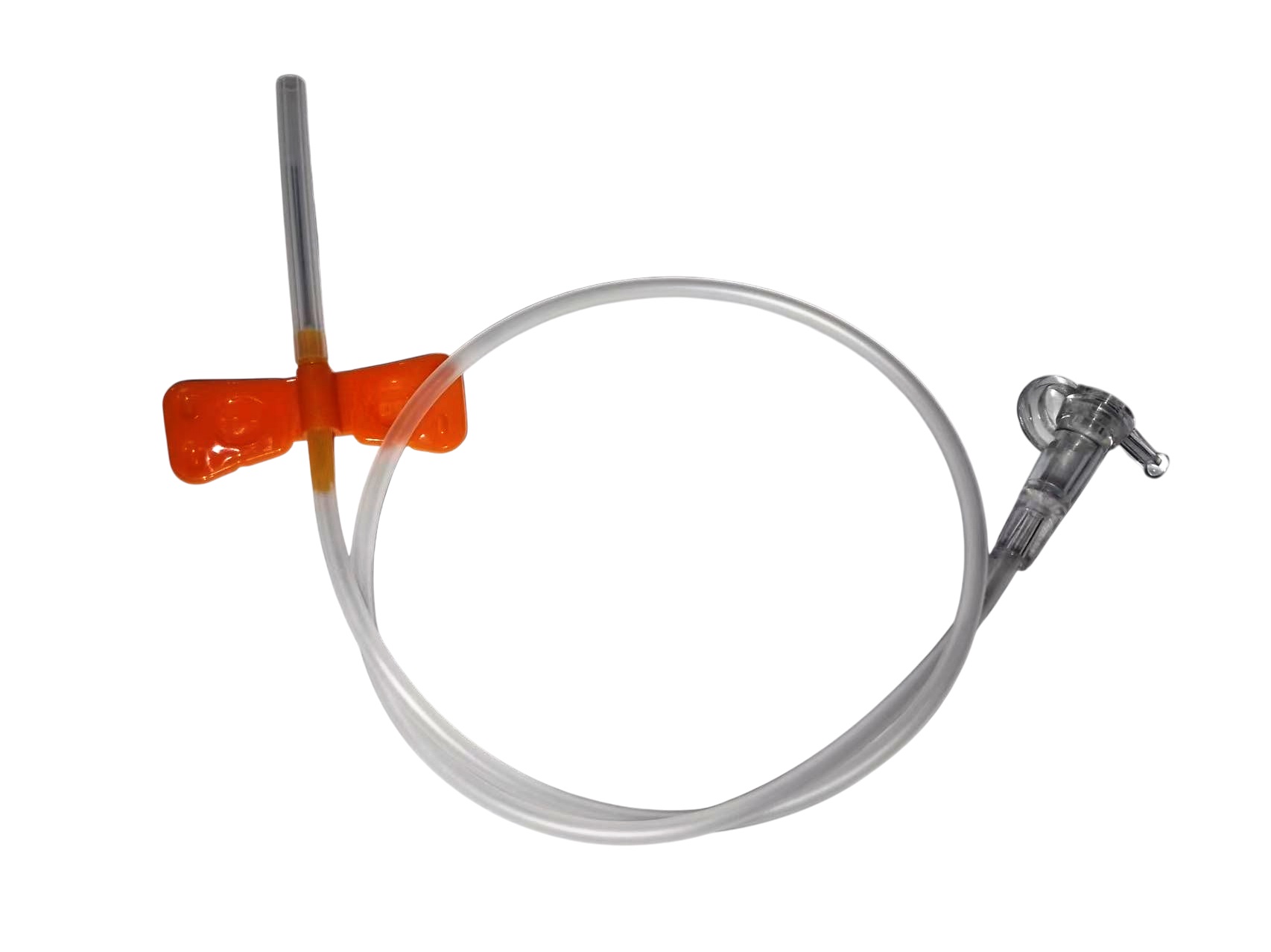 Игла-бабочка для вливания в периферические малые вены представляет собой гибкую прозрачную магистраль, с одного конца которой расположена инъекционная игла, а с другого - соединитель типа Луер (Луер-Слип).