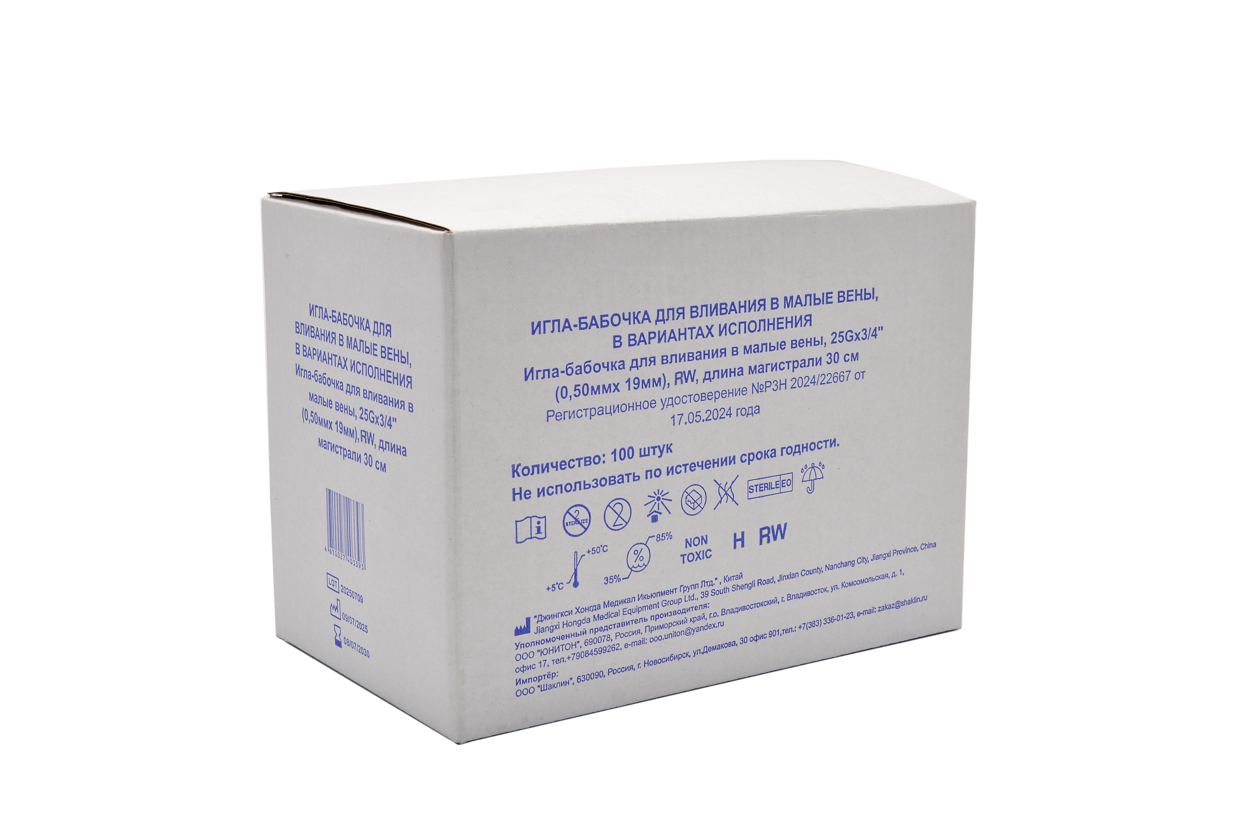 Игла-бабочка для вливания в малые вены, 25Gx3/4' (0,50ммх 19мм), RW, длина магистрали 30 см- 100 шт. /в групповой упаковке;