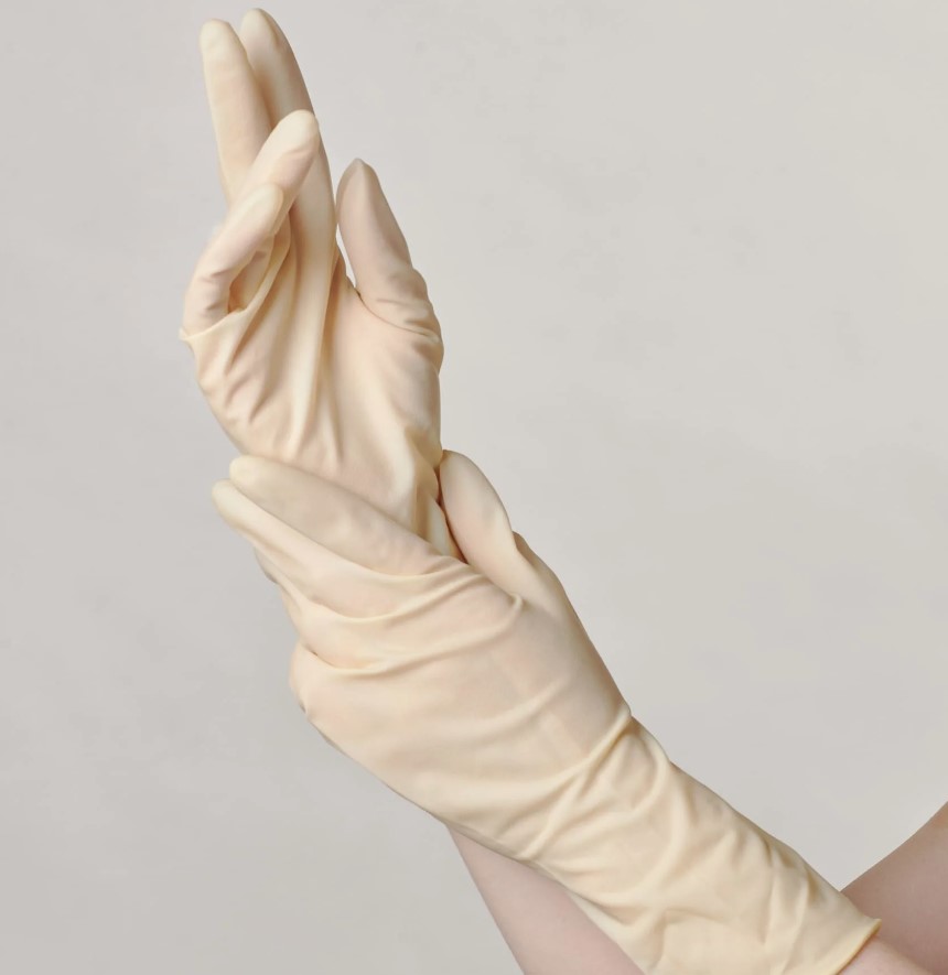 Перчатки медицинские диагностические (смотровые) одноразовые нестерильные латексные, неопудренные с полимерным покрытием, текстурированные, повышенной прочности с удлиненной манжетой XL белые, 25 пар.