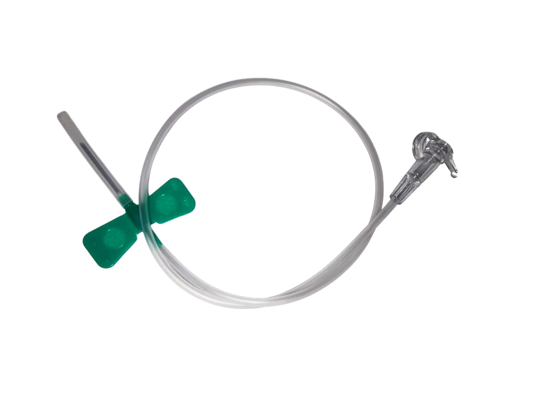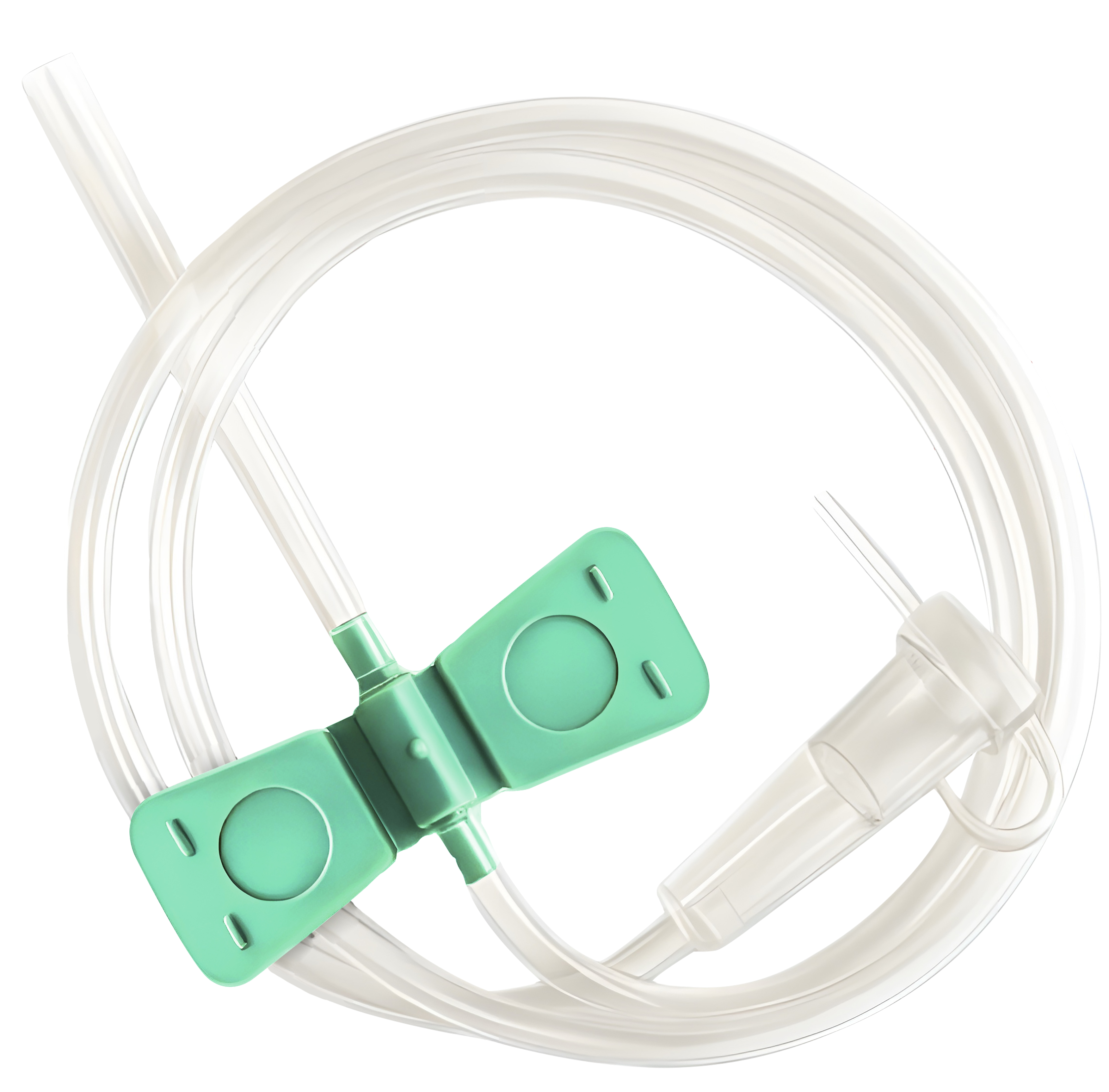 Игла-бабочка для вливания в периферические малые вены представляет собой гибкую прозрачную магистраль, с одного конца которой расположена инъекционная игла, а с другого - соединитель типа Луер (Луер-Слип).