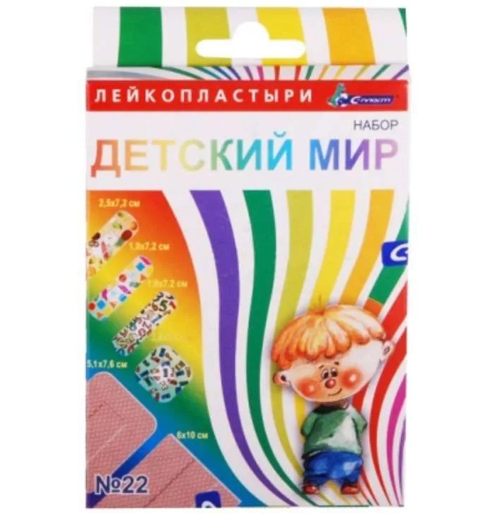 Набор детских бактерицидных лейкопластырей с яркими рисунками