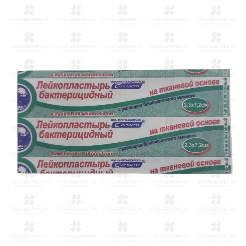 Лейкопластырь бактер. на тканевой основе телесный 2,3х7,2 см с р-ром бриллиантового зеленого № 1