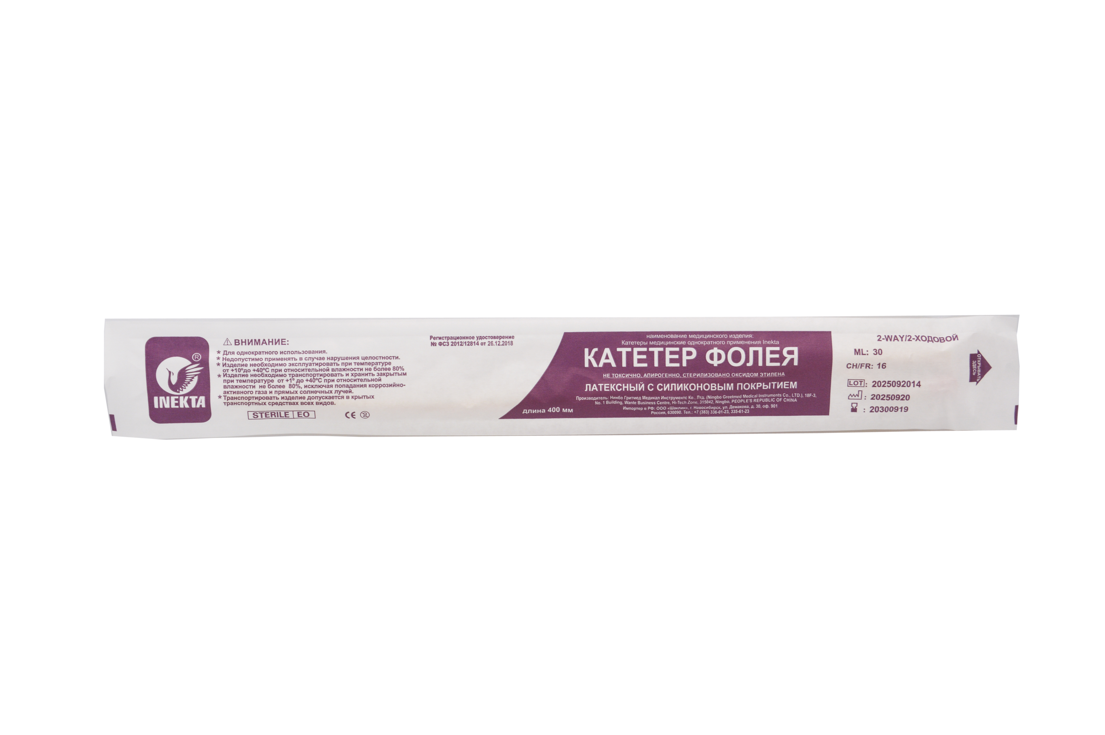 Катетер (зонд) двухходовой для длительной катетеризации мочевого пузыря. Размер по шкале Шарьера (Ch/Fr) 16