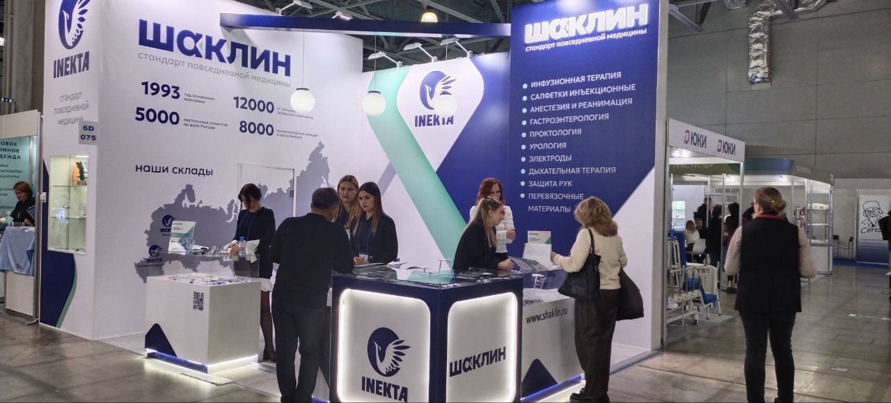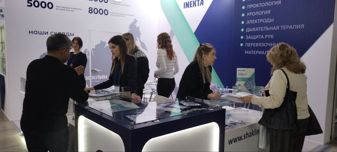 Компания «Шаклин» традиционно принимает активное участие в выставке, представив в этом году на современном и стильном стенде широкую линейку медицинских расходных материалов собственного бренда «INEKTA».